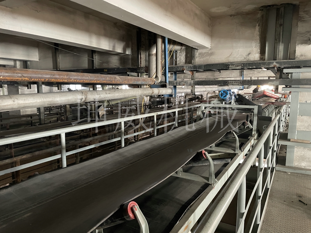 河南坤威機械在湖北黃石的施工現場,該皮帶輸送機為帶犁式卸料器的機型,目前已經安裝使用。