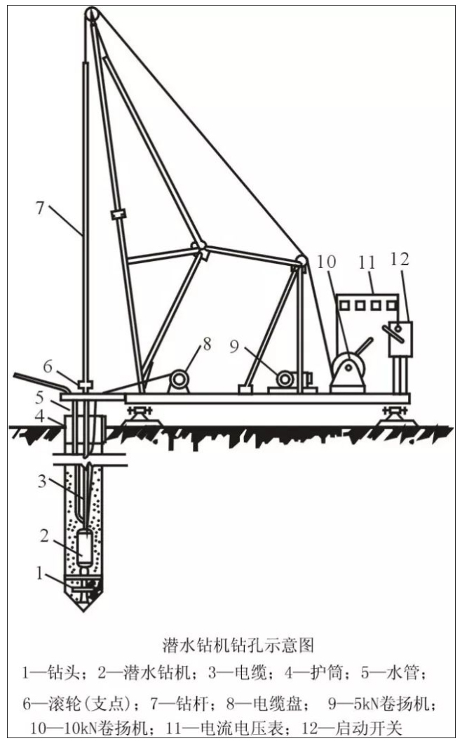 2、成孔機械有潛水鉆機、沖擊鉆機、沖抓錐等。