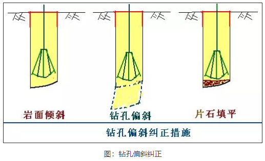 2、鉆機就位后,鉆桿垂直對準樁位中心,開鉆時先慢后快,減少鉆桿的搖晃,及時糾正鉆孔的偏斜或位移。