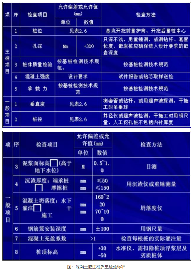 2.5 灌注樁施工質(zhì)量要求及完全技術(shù)
